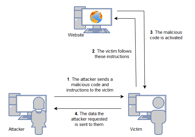 Tijdens een zelf XSS-aanval wordt het slachtoffer gemanipuleerd om kwaadaardige code in hun webbrowser uit te voeren. De aanvaller stuurt kwaadaardige code naar het slachtoffer, die deze code moet plakken in de browser om deze uit te voeren. Voor dit type XSS om succesvol te zijn, moet het slachtoffer meerdere stappen volgen die door de aanvaller worden verstrekt.